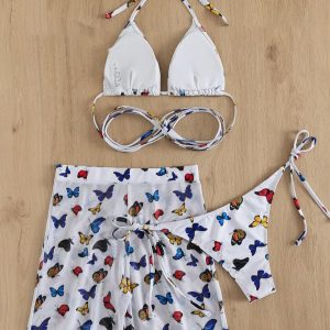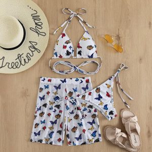 Description: Bikini 3 pièces blanc imprimée papillon les poupée’s97
