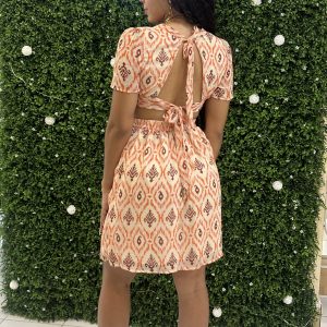 Robe courte AGNÈS à manche courte décolleté devant à nouer au dos les poupées 97