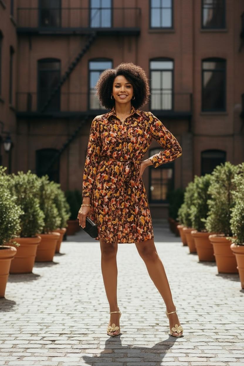 Robe chemise à manche longue et sa ceinture à motif feuille les poupées 97
